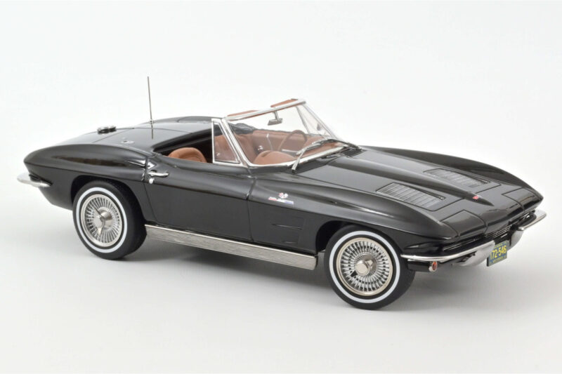 The Chevrolet Corvette C2 Sting Ray Cabriolet Norev 1:18 is crafted from Druckguss. Die-cast zinc alloy body with detailed plastic parts, rubber tires, and high-quality paint finish. Die-cast models are known for their weight, durability, and realistic feel.