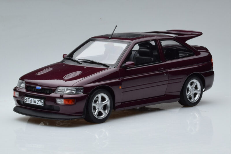 The Ford Escort RS Cosworth Lila Norev 1:18 is crafted from Druckguss. Die-cast zinc alloy body with detailed plastic parts, rubber tires, and high-quality paint finish. Die-cast models are known for their weight, durability, and realistic feel.