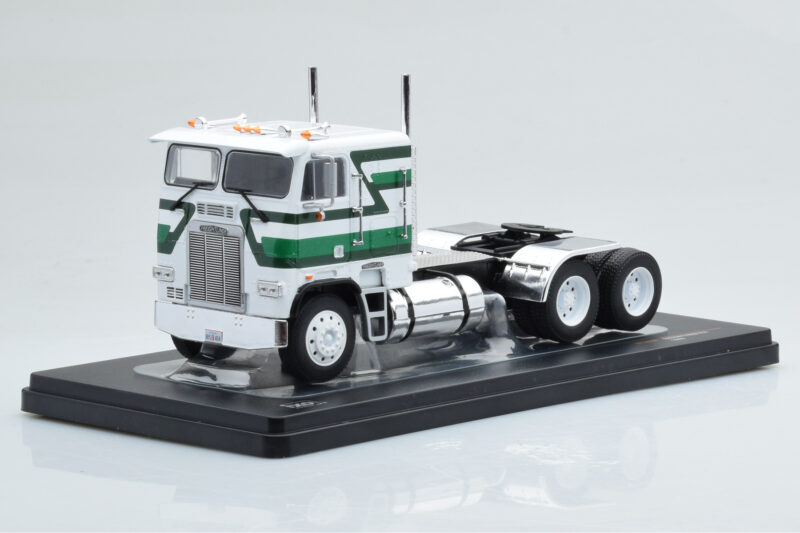 The Freightliner FLA Weiß Grün IXO 1:43 is crafted from Druckguss. Die-cast zinc alloy body with detailed plastic parts, rubber tires, and high-quality paint finish. Die-cast models are known for their weight, durability, and realistic feel.