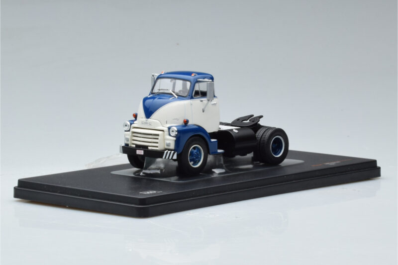The GMC 950 COE Blau Weiss IXO 1:43 is crafted from Druckguss. Die-cast zinc alloy body with detailed plastic parts, rubber tires, and high-quality paint finish. Die-cast models are known for their weight, durability, and realistic feel.
