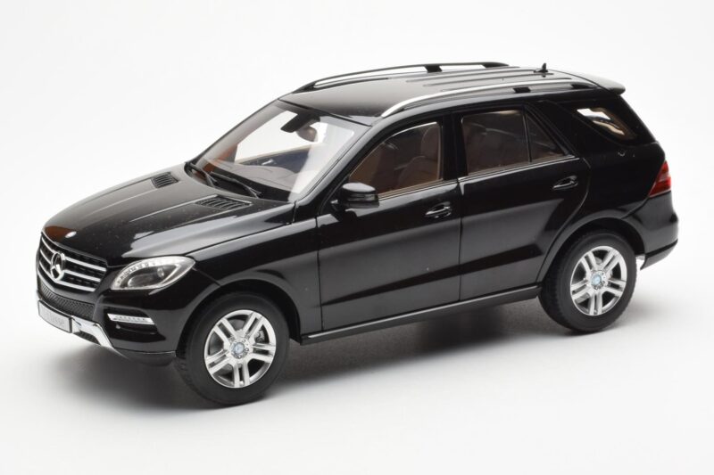 The Mercedes M-Class W166 Obsidian Schwarz Metallic Minichamps 1:18 is crafted from Druckguss. Die-cast zinc alloy body with detailed plastic parts, rubber tires, and high-quality paint finish. Die-cast models are known for their weight, durability, and realistic feel.