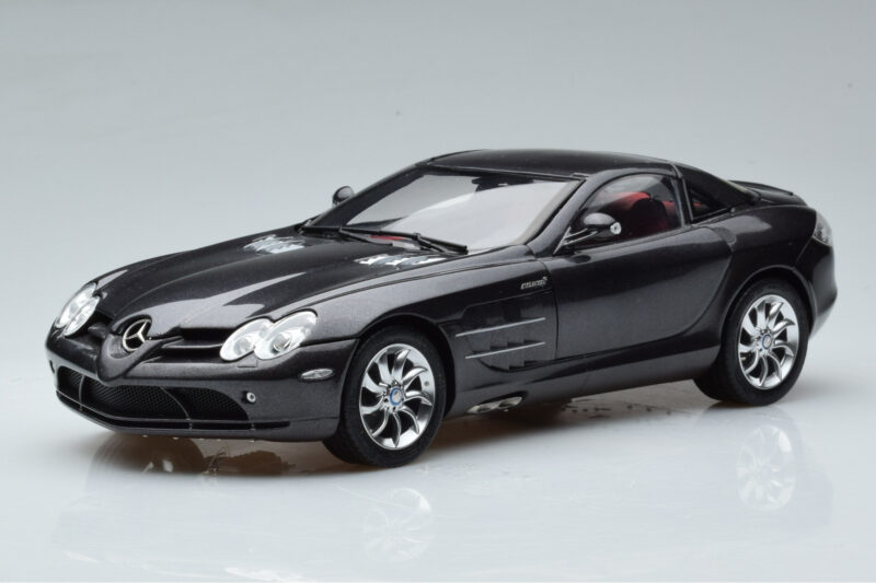The Mercedes SLR McLaren Schwarz CMC 1:18 is crafted from Druckguss. Die-cast zinc alloy body with detailed plastic parts, rubber tires, and high-quality paint finish. Die-cast models are known for their weight, durability, and realistic feel.