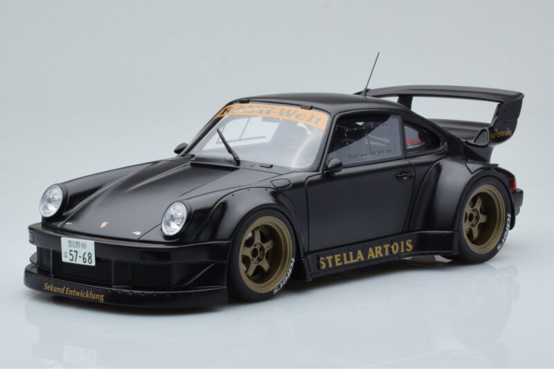 The Porsche 911 964 RWB Stella Artois Schwarz GT Spirit 1:18 is crafted from Resin. High-quality resin with hand-painted details and limited production runs. Resin models offer exceptional detail and are prized by serious collectors for their craftsmanship.