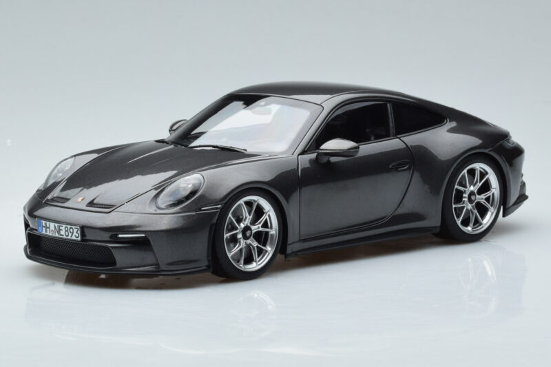 The Porsche 911 992 GT3 Touring Package Grau Norev 1:18 is crafted from Druckguss. Die-cast zinc alloy body with detailed plastic parts, rubber tires, and high-quality paint finish. Die-cast models are known for their weight, durability, and realistic feel.